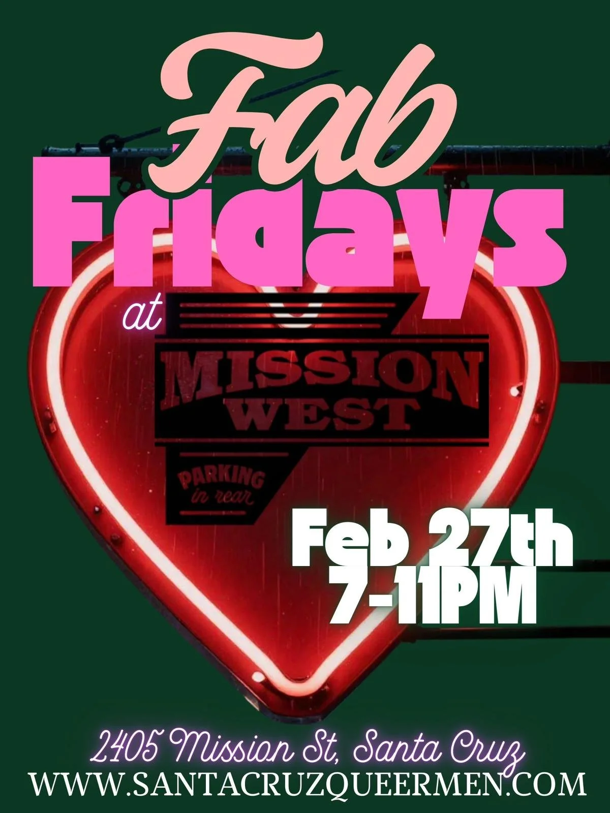 Santa Cruz Queer Men organizes monthly Fab Friday events where gay, bi, and trans men can gather to make friends, form relationships, and have fun. Events are generally on the last Friday of the month.
